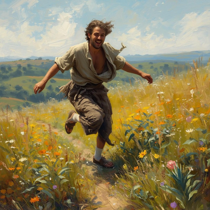 Sadece köylüler kendisine bir şeyler ikram ettiği zaman garip gezintisine ara veren bu adam güneş doğunca ormanın derinliklerinden köye gelir, güneş batınca da o bilinmeyen yuvasına geri dönerdi. Tüm gün boyunca asla bitmeyen enerjisi ve gün boyunca tekrar ettiği cümleler yüzünden herkes onun deli olduğunu düşünürdü. Yine de dünyanın en şanslı insanı bu durumu kafasına takmaz, ona laf atan insanlara çoğu zaman cevap dahi vermezdi. Sadece bir keresinde ona bu şekilde seslenmiş birisine şöyle söylemişti: “Bana deli olduğum için üzülmeyin, her saniyede delirme fırsatını bir kez daha kaçırdığınız için kendinize üzülün!” Konuşması bitince de çoğu insan için anlamsız olan cümlelerini tekrar etmeye ve hoplayıp zıplayarak ilerlemeye devam etmişti.
