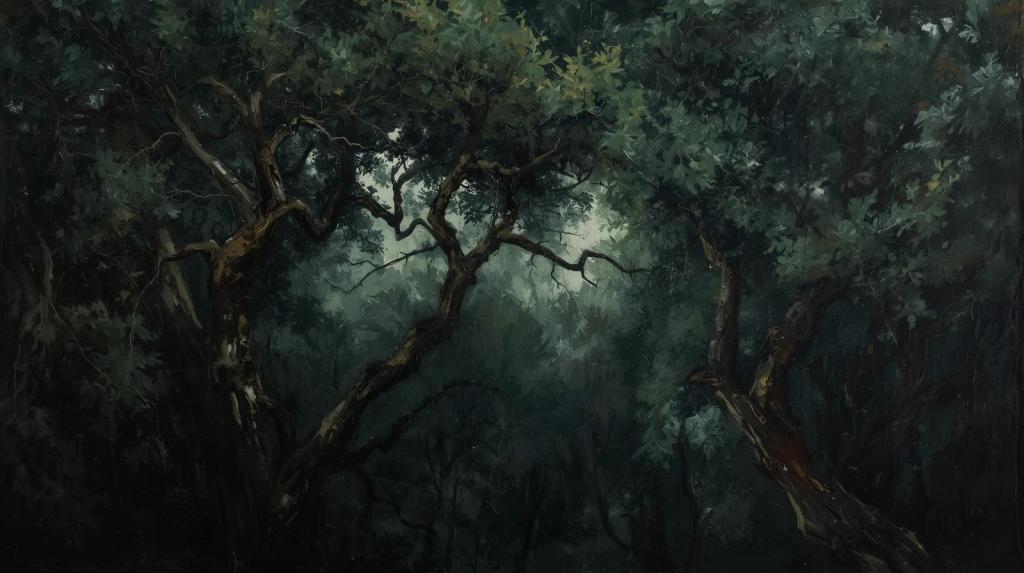 Yeteri kadar ilerlediğini düşündükten sonra bir ağacın dibine oturdu, esmekte olan soğuk rüzgar etraftaki dalları sallandırıyordu. Ağacın gövdesine sırtını verdi, uzaklarda uluyan kurtları ve ağaç dallarında şakıyan kuşları dinleyerek derin düşüncelere daldı. Şöyle söylüyordu kendine: “Bir hainim ben… bir hainim ben… bir hainim ben. Etrafımdaki herkes bir şeylerin ve bir şeylerin sıkıntısını yaşarken, bir başkası için çalışıp hayatlarını çürütürlerken, hakikatı görmüş birisi gibi dünyadan keyif almak beni en büyük hain yapar! Bir hainim ben, bir hainim ben… dünyanın en şanslı hainiyim ben! Saçlarım yeşili, damağım zehri, gönlüm ise şerri hak ediyor!”